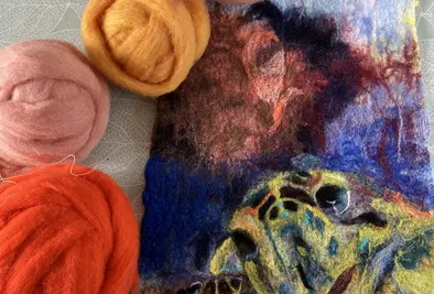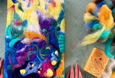 Mit bunter Wolle vom Schaf und einer Filznadel fantasievolle Bilder malen!