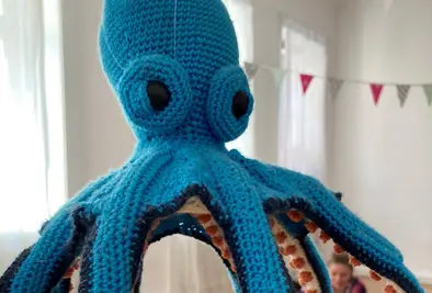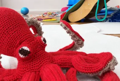 Oh, hallo Oktopus! Deine Arme tanzen aber schön durch das Wasser! (Wellenartige Armbewegungen)