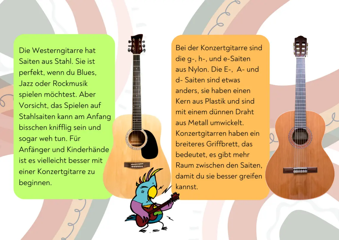 Der zweite Blues heißt Blues Feeling und wurde von Maria Linnemann komponiert, die in England zu Hause ist. Dieses Stück spielt Marlon auf einer Westerngitarre, die spezielle Saiten aus Stahl aufgespannt hat. Deshalb klingen sie auch etwas „metallener“. Hörst du den Unterschied?