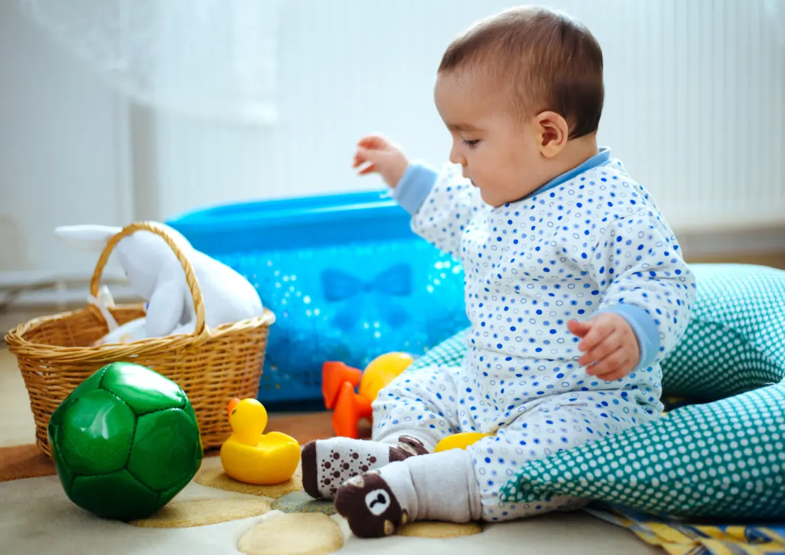 Wenn ein Kind auf die Welt kommt, hat es schon erste Spielerfahrungen gemacht, denn das erste Spielmaterial ist der Körper und was man über Ultraschallbilder sehen kann ist, dass der Fötus bereits im Mutterleib die Finger in den Mund steckt und das immer wiederholt. Dies setzt sich fort, wenn das Baby in der Wiege oder im Bettchen auf dem Rücken liegt.