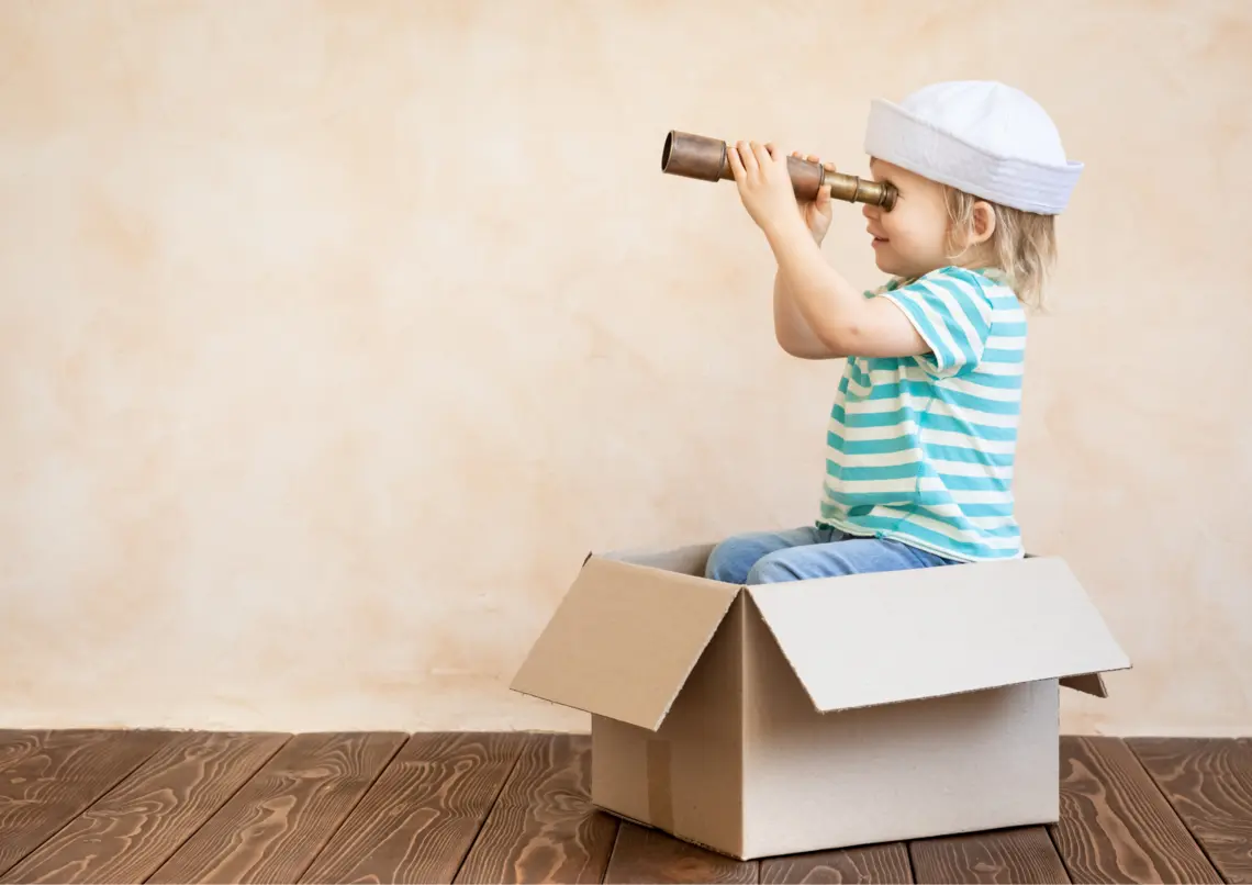 Wenn wir aus „Nichts“ „Etwas“ kreieren, ist das Ausdruck unserer Kreativität. So suchen Sie am besten jenes Material für die Kinder zum Spielen aus, in dem noch keine Idee eines Spielzeugherstellers drinnen steckt: Dinge aus dem Haushalt, Kisten, Wäschekörbe, Tücher, Decken, Papprohre, Stoff- und Wollreste (Achtung auf die Sicherheit des Kindes, dass sie sich die Stoffe nicht um den Hals wickeln), Tiere, Puppen, Kartonschachteln, Bälle und natürlich Naturmaterialien (Zapfen, Muscheln, Steine, Kastanien).
